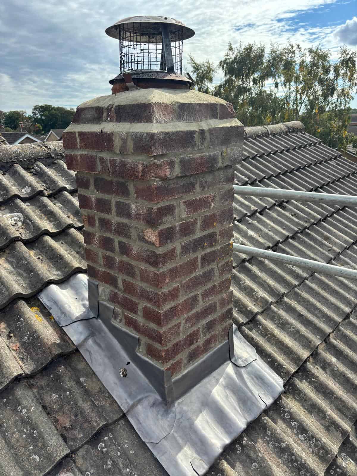 Supplied and erected scaffolding with a full working platform surrounding the chimney to provide safe access for two roofers.